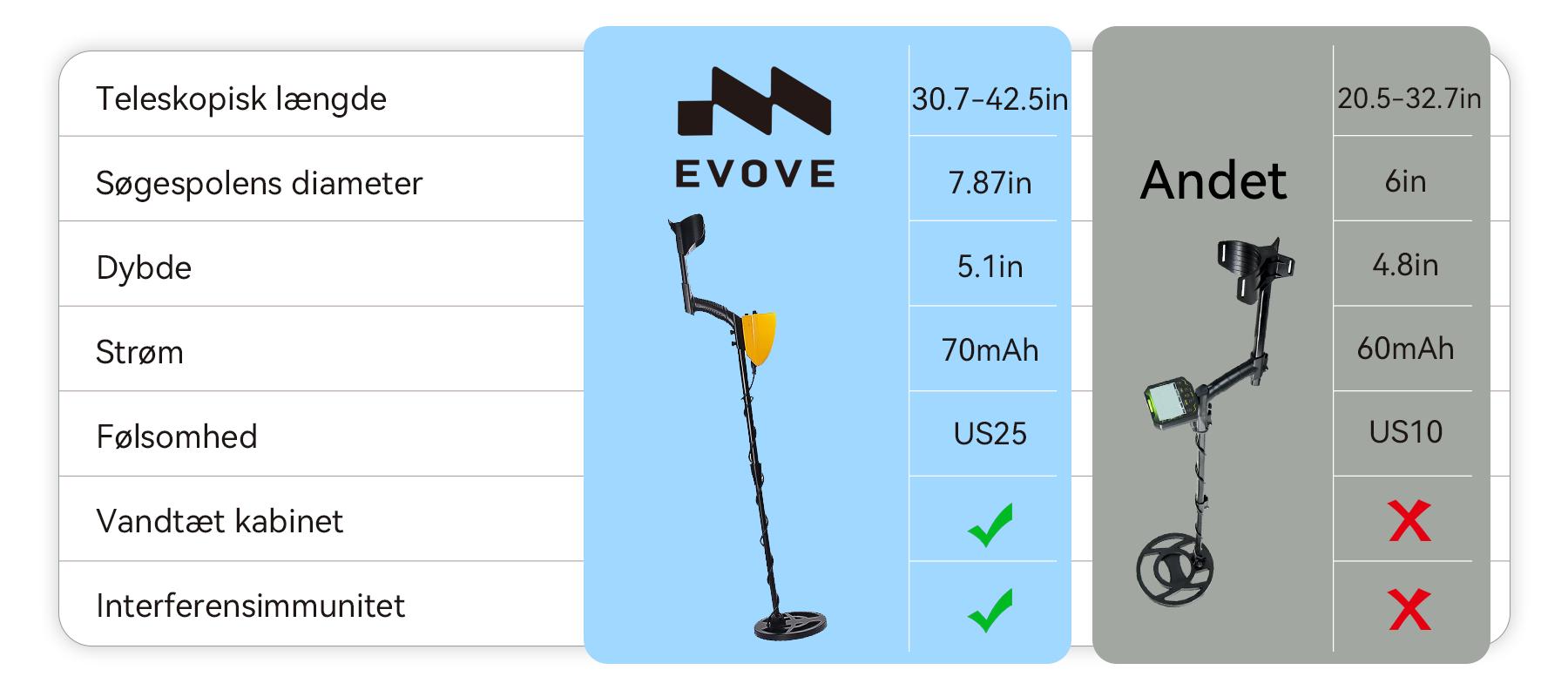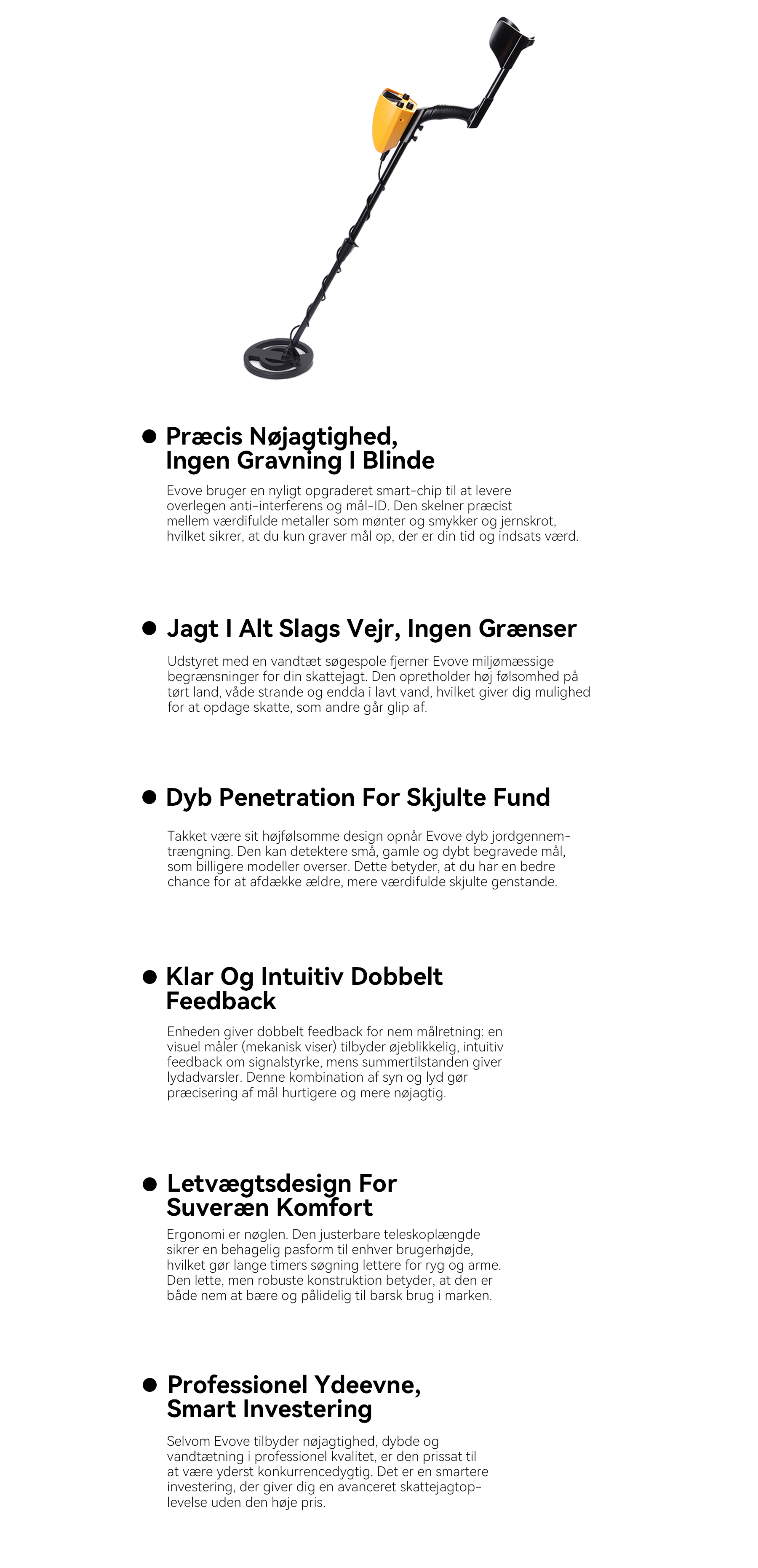 Den overbevisning førte til Evove. Brandet lover at bruge pålidelig teknologi, såsom smart-chips og fuldt vandtæt design, for at gøre metaldetektering præcis, dybdegående og uden begrænsninger. Missionen er at bringe den ægte glæde ved opdagelse ud til alle entusiaster.