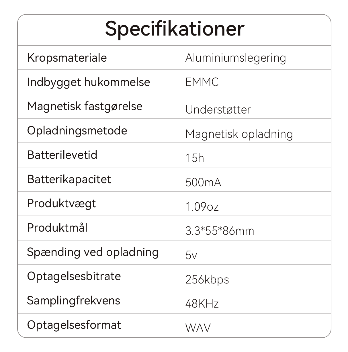- Puheluiden tallennus: Magneettinen kiinnitys mahdollistaa puheluiden ja kokousten vaivattoman tallennuksen.